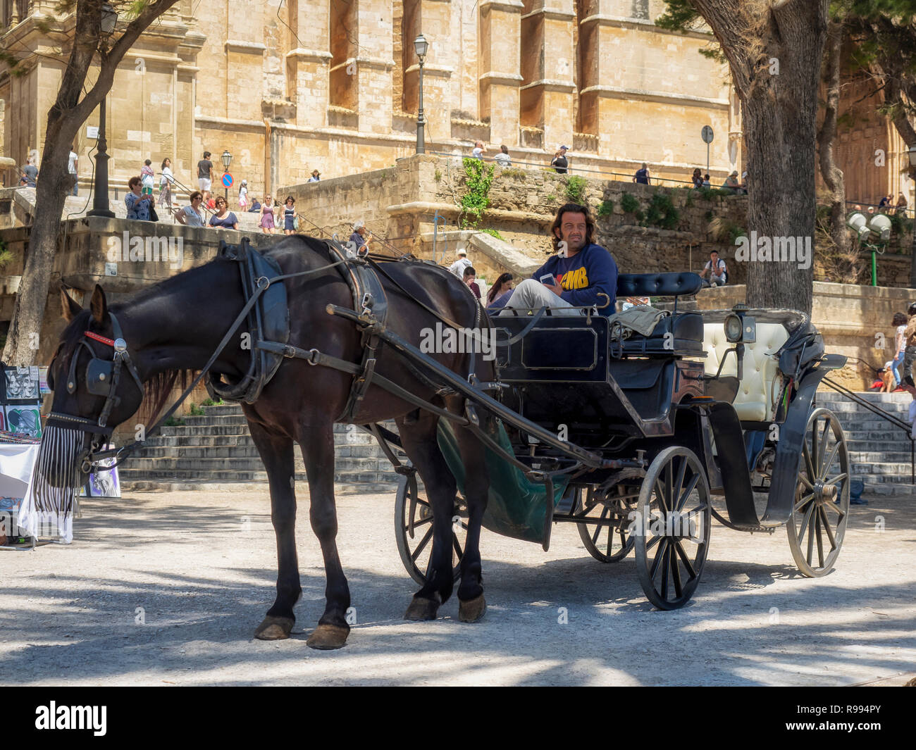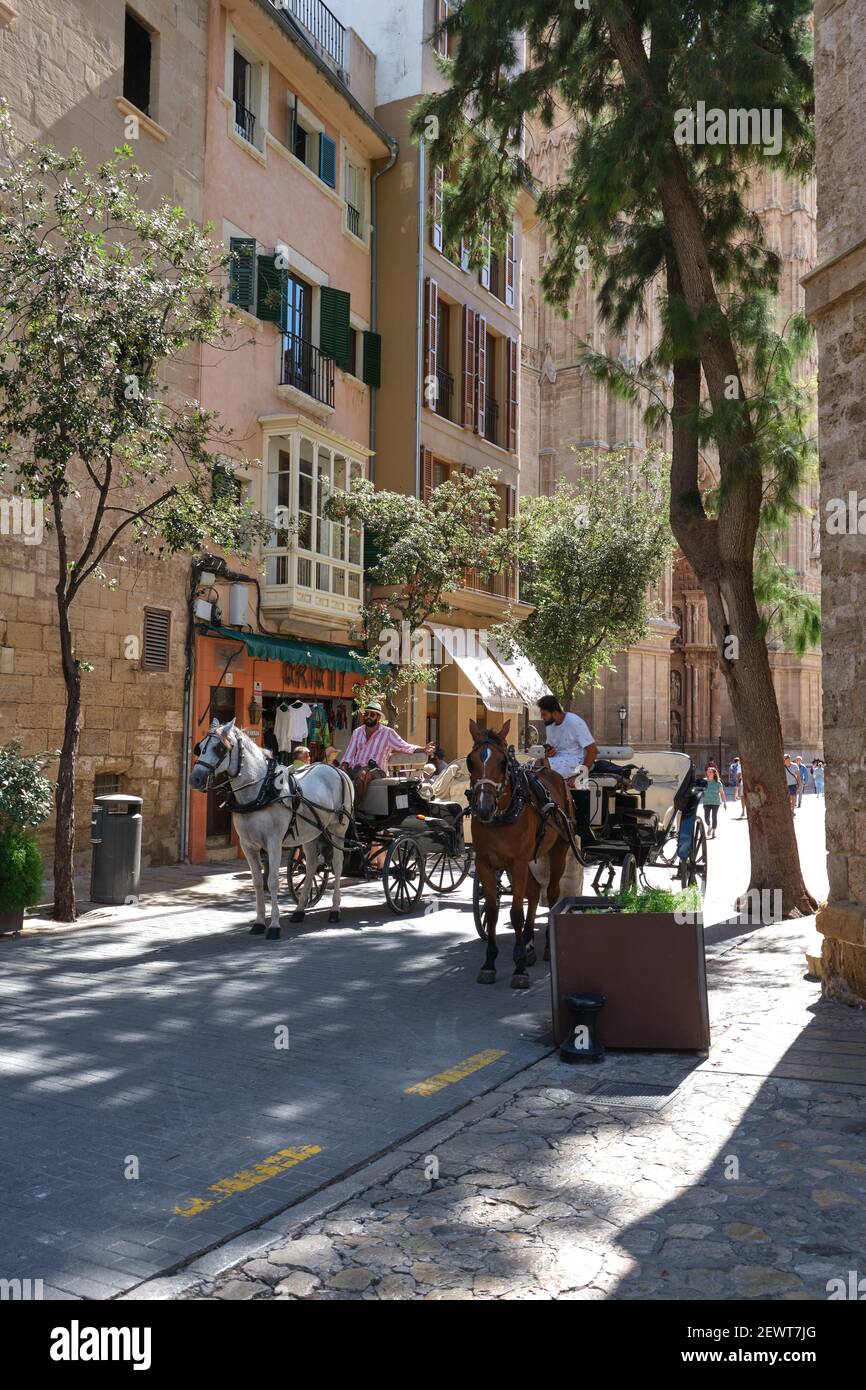 Palma De Mallorca Horse And Carriage Galeras In Front Of Palma Cathedral Catedral De Santa Maria De Palma De Mallorca Stock Photo Alamy